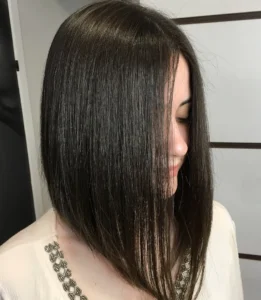 This chic little number isn’t going anywhere. It’s all about razor-sharp lines and super glossy strands.